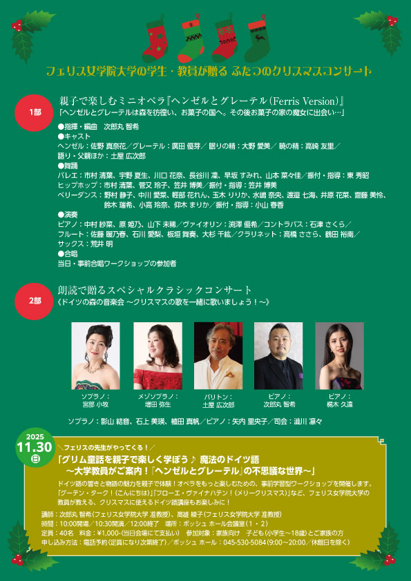 フェリス女学院大学音楽学部の学生と教員が贈る、心あたたまるクリスマスコンサート。