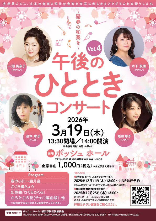 発売日:午後のひとときコンサートVol.4~陽春の和奏を~ 2025/12/11(木)~ 2026/3/19(木)