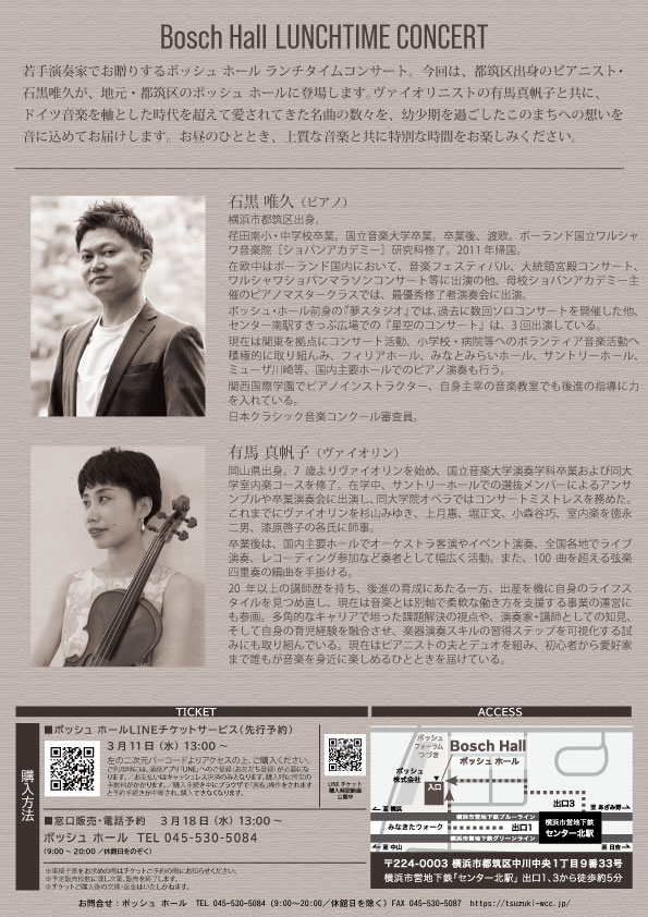 主 催: ボッシュ ホール(つづきアート&メディアパートナーズ)